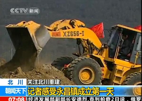 2010年2月3日早7:08分,央視新聞?lì)l道的朝聞天下欄目,播出了汶川地震后第一個(gè)異地重建的新縣城---北川縣城所在地永昌鎮(zhèn)黨委、政府正式掛牌成立的報(bào)道,目前,北川的各項(xiàng)工程建設(shè)正在如火如荼的進(jìn)行中,其中在央視的報(bào)道中,廈裝XZ656-Ⅰ裝載機(jī)正在繁忙的作業(yè)中。據(jù)了解,我司的裝載機(jī)在汶川地震后的重建中發(fā)揮了重要作用。